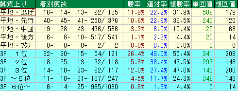 - 3F 6位以下:【壊滅的】 勝率0.6%、単勝回収値5。脚が使えない位置からの逆転は皆無です。