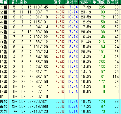 1.馬番別パフォーマンス:狙い目は「内」と「中」の二段構え!
