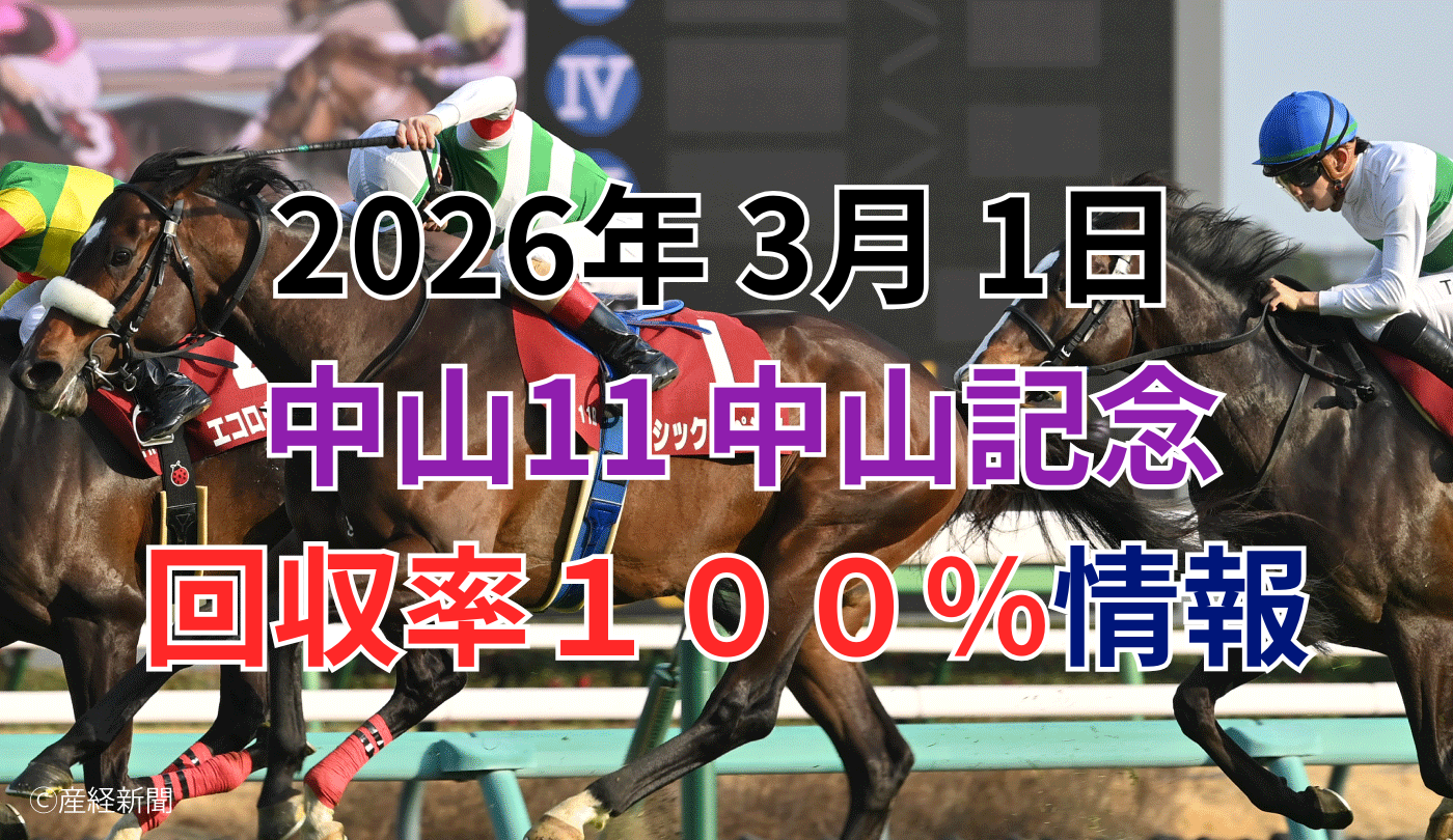 今回は、過去の中山記念の傾向から**「単勝・複勝回収率が100%を超えている(=ベタ買いで儲かる)ファクター」**を徹底抽出。確定している出走馬の条件(血統・年齢・馬番・前走実績・調教師など)に当てはめ、各馬の期待値をあぶり出しました。