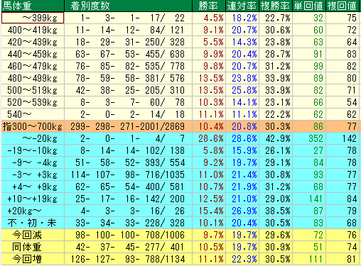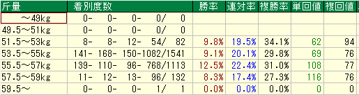 単勝回収率108%! 55.5~57kgは迷わずアタマ固定
